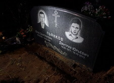 Гравировка портрета и надписи на установленном памятнике на Щербинском кладбище