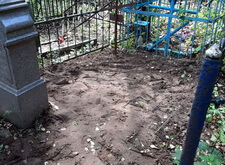 Для начала мы взялись за измерения памятника: нам предстояло изготовить табличку на лицевую сторону надгробья, а верх вновь украсить православным крестом.